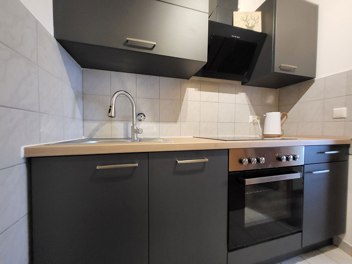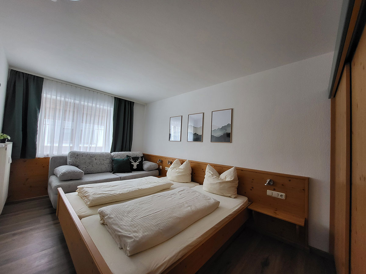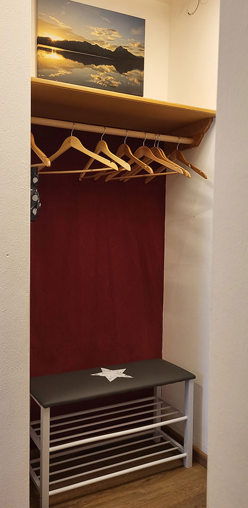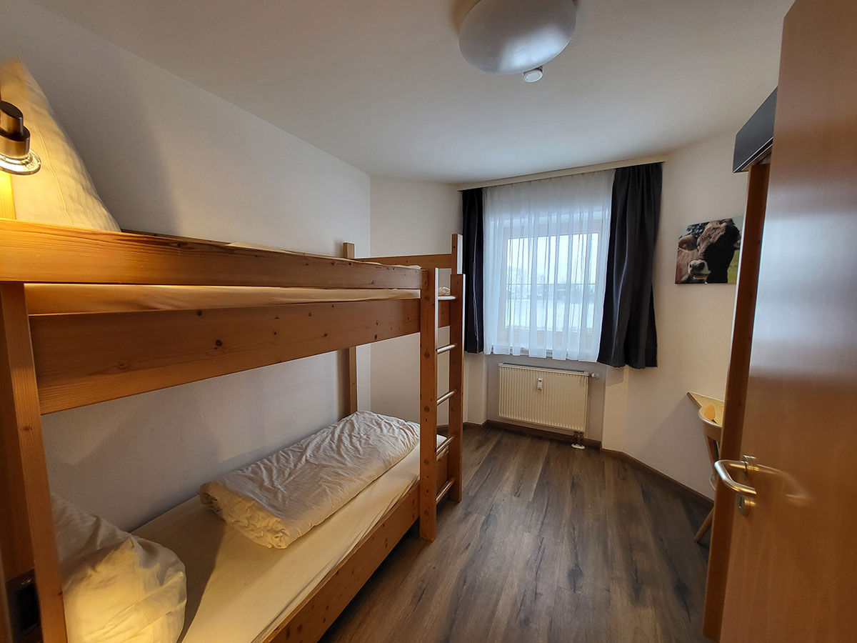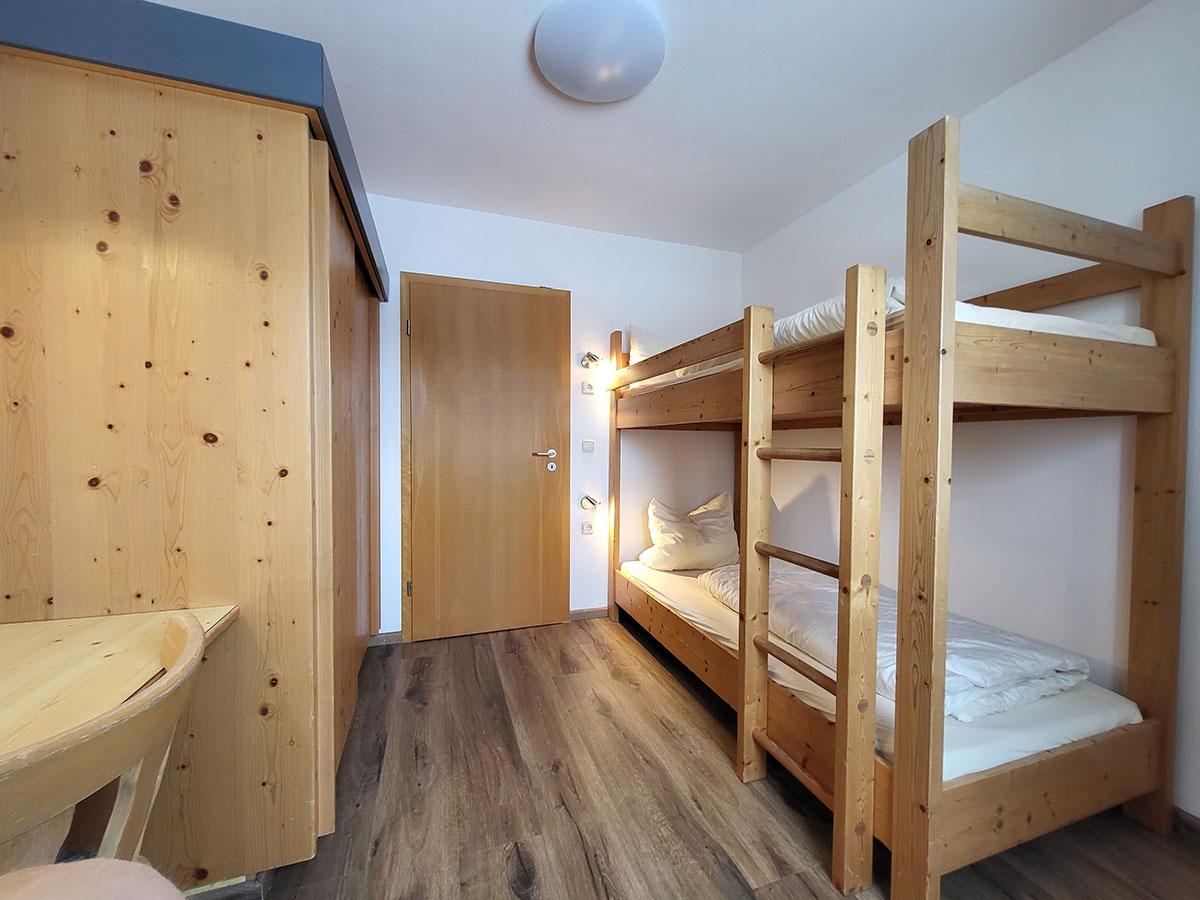 Das Schlafzimmer ist mit einem Doppelbett und einem Ausziehsofa für eine 5. Person ausgestattet. Im Kinderzimmer befindet sich ein Etagenbett. Das Badezimmer verfügt über eine Dusche. Separates WC. WLAN.