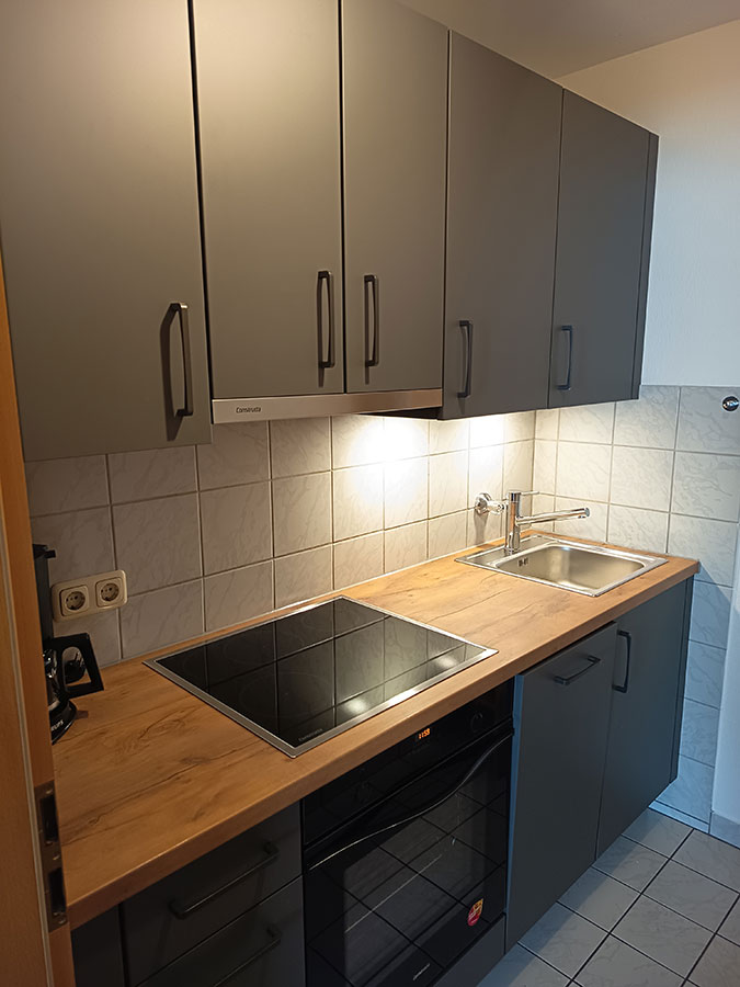 Die gemütliche 3-Zimmer-Wohnung hat eine Wohnfläche von ca. 61 qm, eine voll ausgestattete Küche mit einem 4-Platten-Herd und Backofen, Spülmaschine, Wasserkocher, Kaffeemaschine, Eierkocher, einen Wohnbereich mit Essecke, Sofa und Flachbildfernseher (Sat.-TV-Anlage). WLAN.