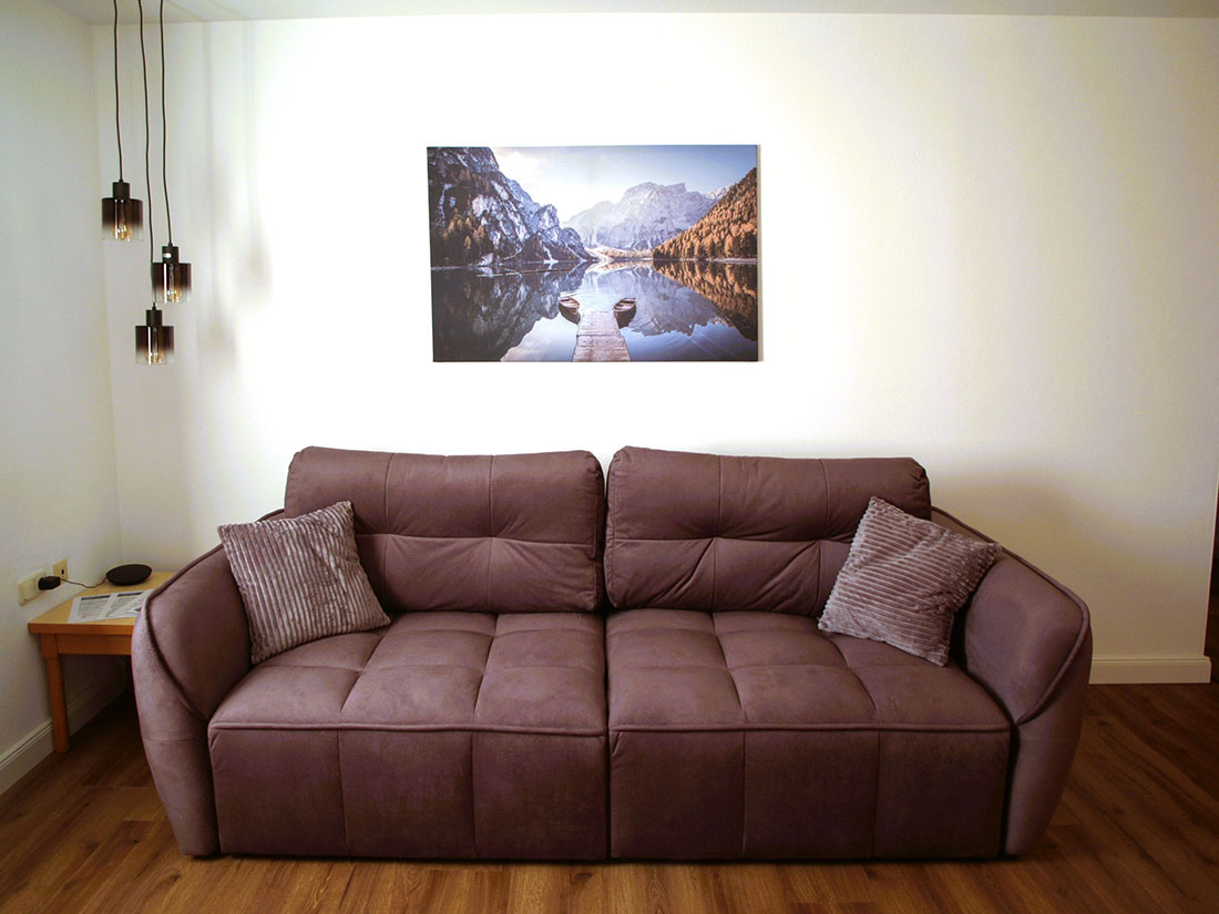 Die gemütliche 3-Zimmer-Wohnung hat eine Wohnfläche von ca. 61 qm, eine voll ausgestattete Küche mit einem 4-Platten-Herd und Backofen, Spülmaschine, Wasserkocher, Kaffeemaschine, Eierkocher, einen Wohnbereich mit Essecke, Sofa und Flachbildfernseher (Sat.-TV-Anlage). WLAN.